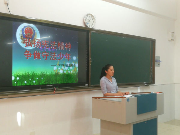 宪法教育是青少年法制教育的核心内容。为使广大学生深入了解宪法,尊崇宪法,弘扬宪法精神,增强法制观念,信息系于10月15日上午第一节课开展了“弘扬宪法精神,争做守法少年”主题班会活动。