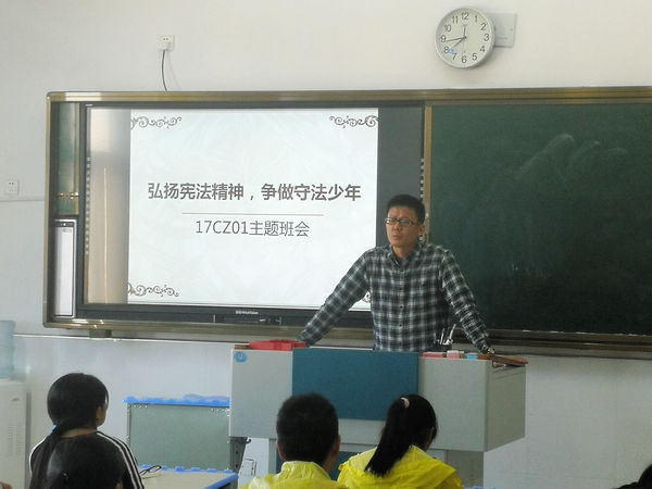 各班主任从宪法是国家的根本法,是治国安邦的总章程讲起,让学生了解宪法是保证国家统一、民族团结、经济发展、社会进步和长治久安的法律基础。接着,各班通过多样的形式探究遵守宪法的重要性以及进一步强调做好宪法宣传教育的重要性。有的班级通过法律故事解读的方式,让学生理解《宪法》中关于人权、平等的理念;还有的班级分小组集体朗读宪法知识文章,使学生明确宪法和法律是全体公民必须遵循的行为规范。
