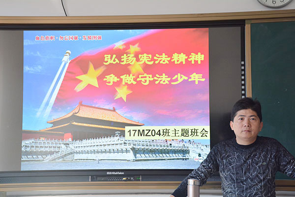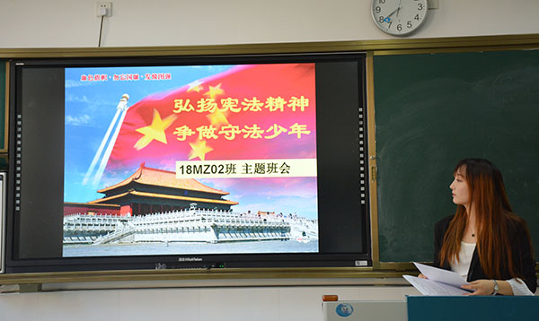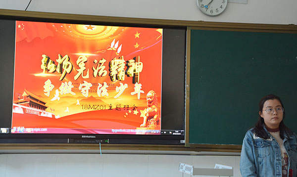 为进一步增强学生遵法学法守法用法的积极性,10月15日上午第一课,经贸系召开“弘扬宪法精神 争做守法少年”主题班会。