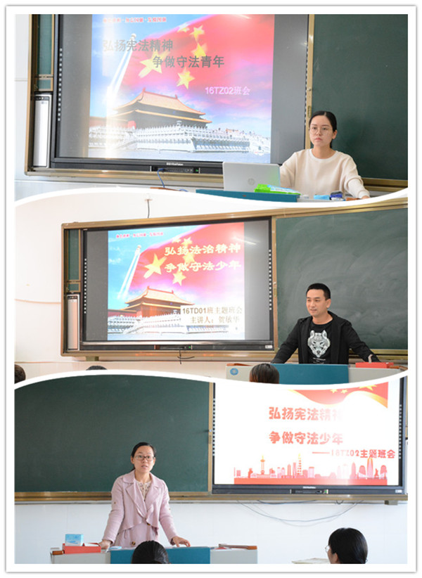为了宣传国家宪法知识,提高学生的法律意识,增强学生的法制观念,10月15日上午第一节课,建工系各班组织开展了“弘扬宪法精神,争做守法少年”的主题班会活动。