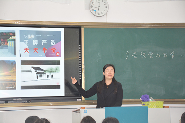 10月22日上午第二课尹金珠老师在17MD02班开设公开课《广告欣赏与写作》,经贸系徐俊、陆丽华、周宇剑等10多位教师参加了听课。