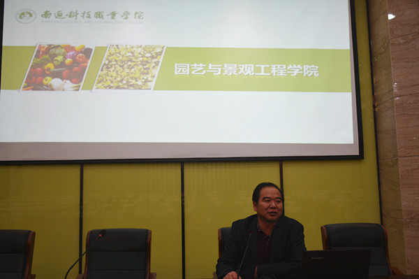 接着,孙院长给同学们播放了南通科技职业学院的宣传片,让同学们领略了学院优美的校园环境,精彩的校园文化,丰硕的办学成果。接着,孙院长就分段培养后继专业园艺技术专业从专业特色、专业定位、人才培养方案、课程设置等方面做了详细介绍,让同学们了解了所学专业内容和专业前景。