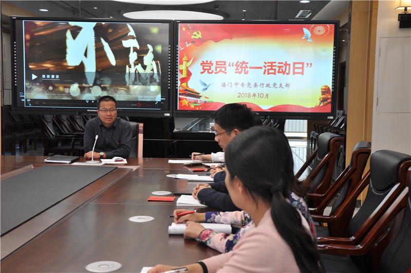 10月29日下午三点十分,行政支部党员在行政楼12楼百度厅参加了10月份党员“统一活动日”活动。支部书记洪龚明主任主持本次活动。 首先,洪龚明主任组织党员观看了微党课短片《十九大报告战略分析》。微党课主讲人唐琮沅分析了我国取得的十大成就,同时也存在着一定问题。基于此,要求全体党员认识到“两个没有变”、“三个坚持”、“四个伟大战略使命”。中国共产党的初心和使命就是为中国人民谋幸福,为中华民族谋复兴。 其次,洪龚明主任组织支部党员认真学习了新修订的《中国共产党纪律处分条例》。他从修订后的“八个亮点”展开,要求所有党员干部必须牢记我们时刻要用党员标准严格要求自己,防微杜渐,勿以恶小而为之,不断提高自身拒腐防变的能力。 最后,洪主任对“共产党员”“江苏先锋”、“江海先锋”“东洲先锋”等四个公众号的订阅进行了贯彻和宣传。关于《习近平新时代中国特色社会主义思想三十讲》要求党员学习并投票。投票背后是是自身党性的提升,全体党员必须丝毫不能放松要求,在后阶段学习中仍需再接再厉!(姜彦辰)