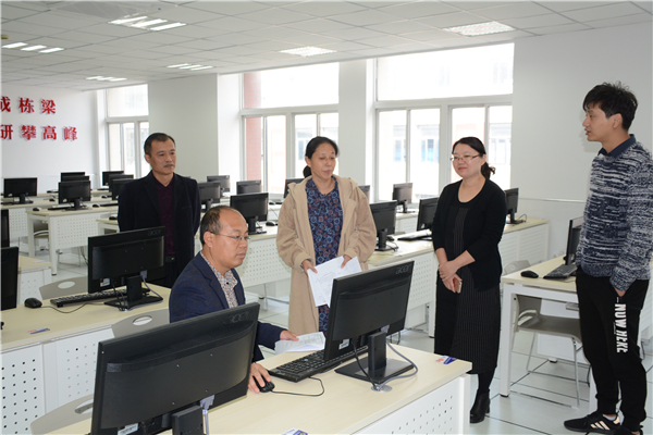 汇报会结束后,专家进行了实地查看。查看了信息化综合实训平台的考试机房,工程测量使用的水准仪、全站仪等设备,网上巡查监控系统,建筑测量实操场地等,并在检查的过程中,及时进行了沟通交流,提出了指导性意见。