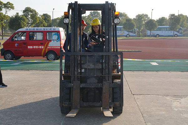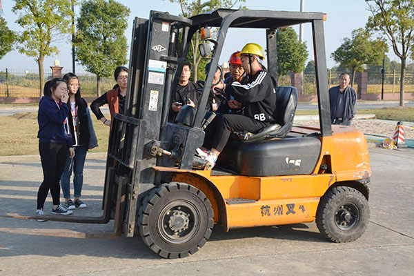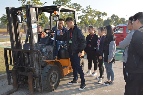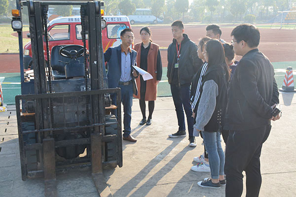 系办与培训老师根据学生实际情况以及考试要求拟定了本次叉车培训的教学任务、教学实施过程和考核。10月30日上午7:30,按照分组安排,5名学生来到培训场地,钱老师首先为学生介绍了叉车的基本知识,让学生们充分理解了叉车工作原理。随后,他依照考试的评分细则,详细讲解了各个注意环节,从驾驶操纵装置运用、安全驾驶操作、起步准备、倒桩、叉载装卸等方面对学生进行一对一指导,接着,同学们在老师的指导下,一一上车演练,通过实践的操作与交流,同学们感受到了技能的实用性与专业的乐趣感。