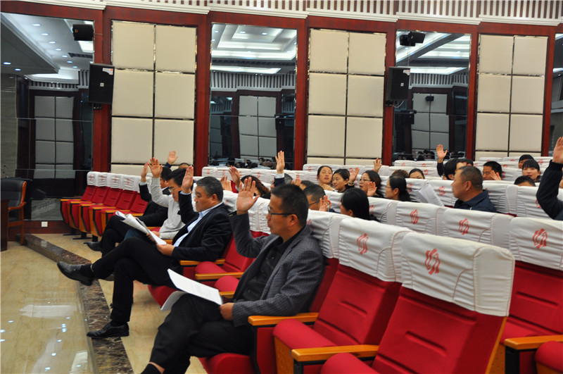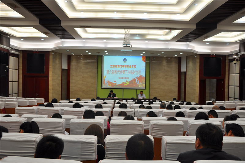 10月30日下午3点30分,学校工会在E楼精匠报告厅召开第六届教代会第五次临时会议。就《江苏省海门中等专业学校教师工作量计算及发放办法》(讨论稿)进行表决通过,会议由工会主席肖冰主持,学校党委书记宋健、副书记副校长周桂岐、副校长王小辉及第六届教代会代表参加了会议。 会前工作人员向参会代表发放了《江苏省海门中等专业学校教师工作量计算及发放办法》(讨论稿),与会代表认真阅读了(讨论稿)。会上党委副书记副校长周桂岐代表学校党委校长室详细解读了《办法》(讨论稿)。他指出,该《办法》(讨论稿)是由教学工作部起草,经过研究、修改、征求意见、党委会议、校长办公会议多次讨论形成的,该《办法》(讨论稿)旨在进一步优化学校管理,充分调动全体教师的工作积极性和主动性,体现多劳多得、优劳优酬的分配原则,促进学校健康、和谐、全面发展。 本次教代会临时会议应到代表110人,实到代表98人,超过应到代表的80%,表决阶段到会的98名代表全票通过《江苏省海门中等专业学校教师工作量计算及发放办法》(讨论稿)。 最后,肖冰主席作总结发言,他指出,作为第六届教代会代表,在为期近三年的履职过程中为学校的发展发挥了积极的作用,我们代表的是全校教职工的根本利益,希望大家继续顾全大局,为学校的继续发展建言献策。(文:肖冰 图:姜彦辰)