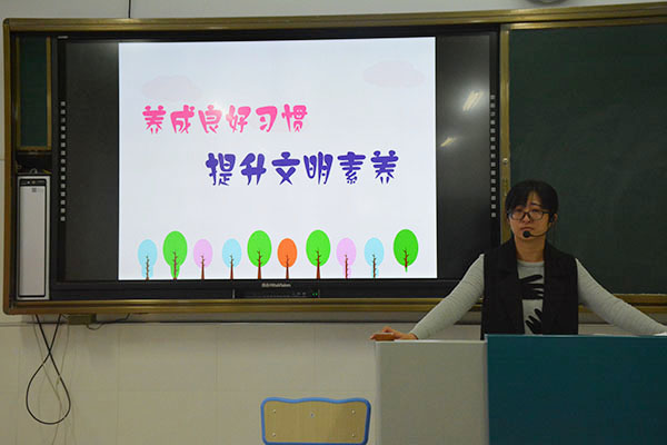 文明习惯养成教育是担负育人职责学校的重要任务,是德育工作的重要内容。班会课上,班主任与同学们分享了文明行为习惯养成的"四结合"育人之路法:养成教育与日常管理相结合;养成教育与生活习惯相结合;养成教育与学习习惯相结合;养成教育与安全教育相结合。活动接近尾声,班主任对学生提出了养成良好习惯的要求,希望同学们努力做到。从我做起,从小事做起,才能在全社会形成崇尚文明、崇尚正气的良好氛围。