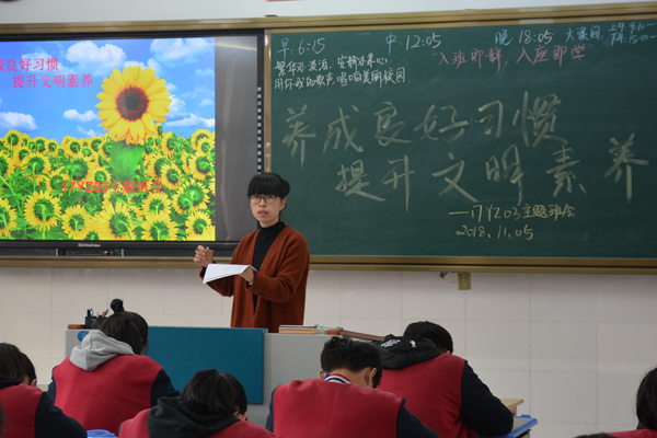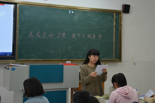 各班主题班会以学校一日常规为抓手,明确良好行为习惯对塑造卓越品质、创造美丽人生的重要性,从言行举止、生活细节、仪容仪表等层面,引导学生养成行事为人的好习惯,增强学生习惯养成的自觉意识,从而提升学生整体文明素养。由于班主任准备充分,各班班会课内容丰富,形式多样,能充分调动学生的主动性,取得良好效果。