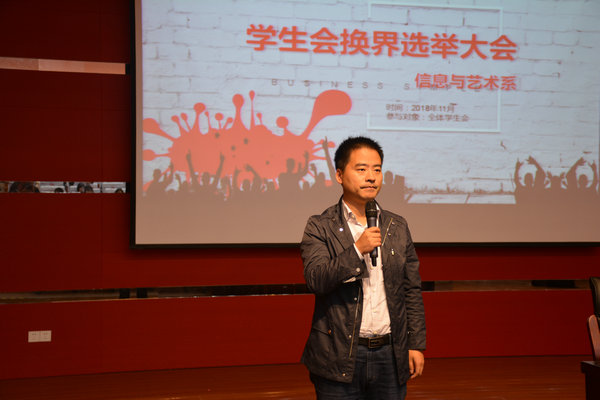 11月8日下午14:10信息系学生会换届活动在H楼报告厅举行。此次活动由信息系学生会组织策划并实施,系部主任徐亮、德育主任沈豪杰以及各班三位学生代表进行打分。