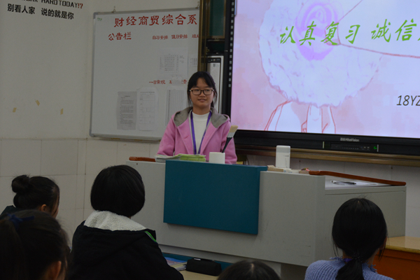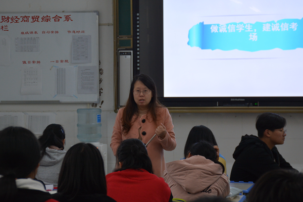 为进一步加强考风考纪教育,营造良好的考试氛围和公平公正的考试环境,财贸系于11月12日上午第一课,开展了以“认真复习,诚信应考”为主题的班会课活动。