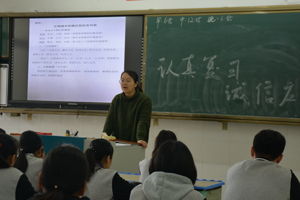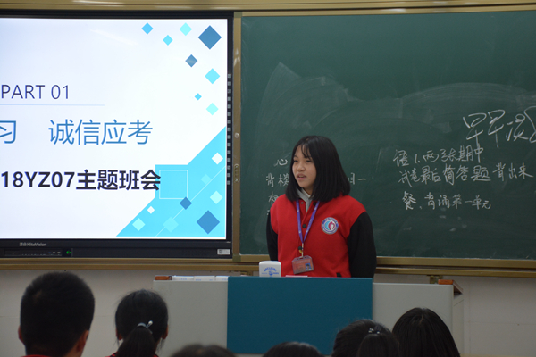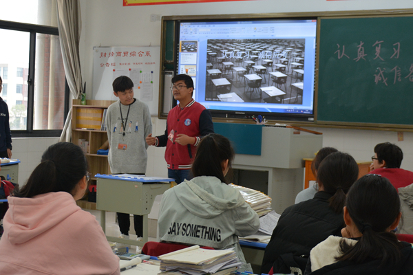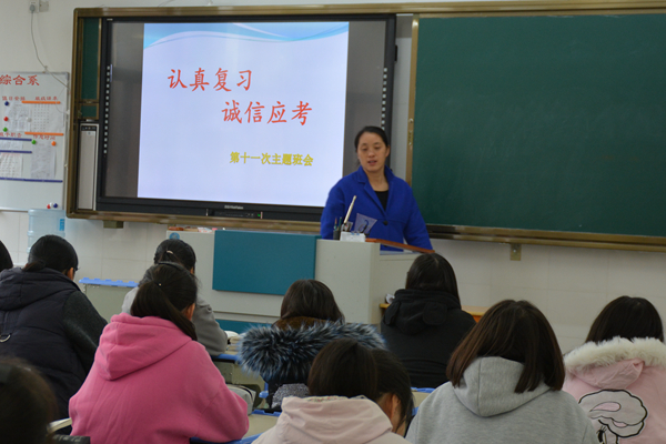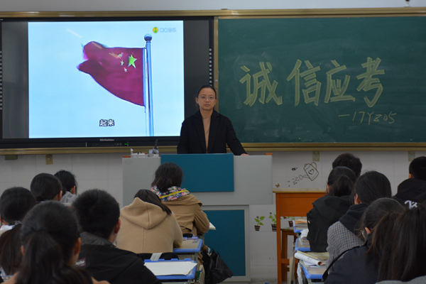 班会课上,各班主任首先介绍了本次考试的总体安排,提醒同学们合理安排时间,认真复习备考,凭借真才实学实现自己的梦想。接着结合社会主义核心价值观深刻内涵和《学生读本》各项规定,要求全体同学遵守纪律、诚信应考,并列举典型案例,对考风考纪问题进行警示教育。最后,全体同学签名,郑重承诺“诚信应考,青春无悔”。