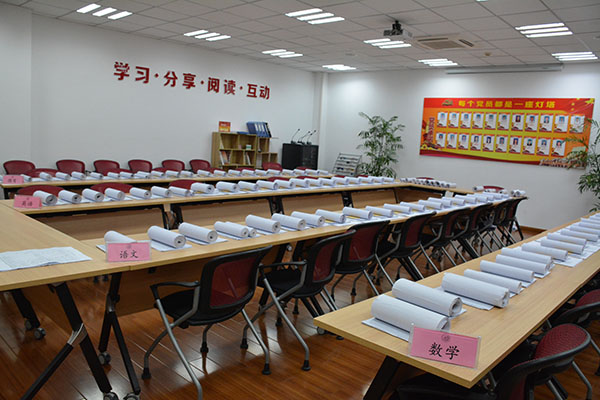 11月14日下午大课间,班主任组织学生进行考场布置,按照标准,35人一个考场,清空桌肚,拉开桌距,学生个人物品统一放置讲台处。