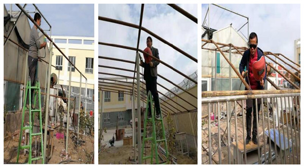 克州职校农经工程系是2018年8月组建成立的,成立之前学校许多年没有招收农学专业,成立之后农经工程系招收了两个设施农业班。学校以前的农学实训设备早已陈旧落后不能满足教学的需求,原有的校外实训基地已不存在,校内智能温室不能正常使用,维修需要大量资金。由于农学专业是一门实践性非常强的专业,没有农学实训基地设施,农业专业的学生就不能实践操作。这样既不利于学生的培养也不利于专业发展。我在了解这些情况后,利用业余时间在校园内寻找适于搭建温室的地方作为校内农学专业实训基地,并为这事多次与校领导汇报沟通,最终选择把在学校智能温室南侧、学生浴池西侧、智能温室储物间东侧大约110平方的一块地作为搭建温室的场地。选好场地后我与援疆教师刘玉石老师和赵改正师傅三人商量实施搭建。我们利用学校现有材料自己动手搭建了可用面积约为110平方米的小型温室。现已基本完工,虽然辛苦,但看到面前的成果时,却有着满满成就感!(肖锦)