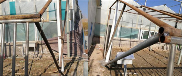 立中排、后排柱: 焊接管材,完成温室骨架,形成屋面,采光屋面骨架,全部焊接完成