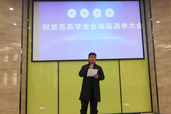 为加强学生会团队建设,实现平稳过渡,11月20日中午12:00,财贸系在謇公楼名匠报告厅举行了学生会换届选举大会。出席本次大会的有施黎华副主任、周莉科长以及吴利华、徐杨帆、史跃辉、吴慧娟、李海涛、姜彦辰等老师,此外还有各班班长和团支书。