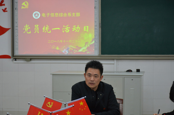11月21日下午3点,电信系全体党员在E楼118党员活动室举行党员统一活动日活动,活动由支部书记顾辉主持。