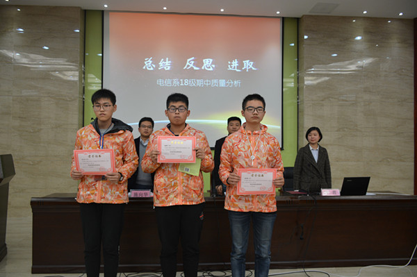 电信系18级学生通过这次质量分析会总结了自己的现状,在反思中找准了进取的方向,坚信我系18级学生会秉承电信系吃苦耐劳的优秀传统,再创优秀新高度!(文:冯霞/图:黄健)