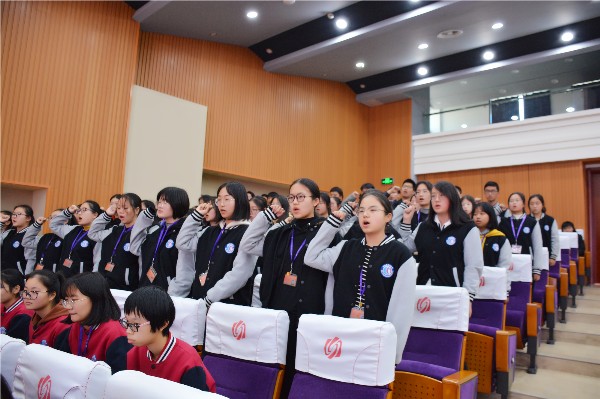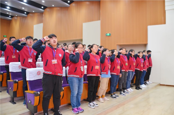 会议第一个议程是各班级进行集体宣誓。“我以青春的名义宣誓:我要全力以赴,刻苦学习,不负天赐的智慧,不负青春的理想,不负父母的期望,不负恩师的厚望,不作怯懦的退缩,不作无益的彷徨……”各班学生抬头挺胸,高举右拳,用嘹亮激昂的宣誓声表达自己学习的斗志和信心。宣誓声此起彼伏,响彻整个会场,构成冬日里的一曲铿锵有力、慷慨激昂的奋斗乐章。