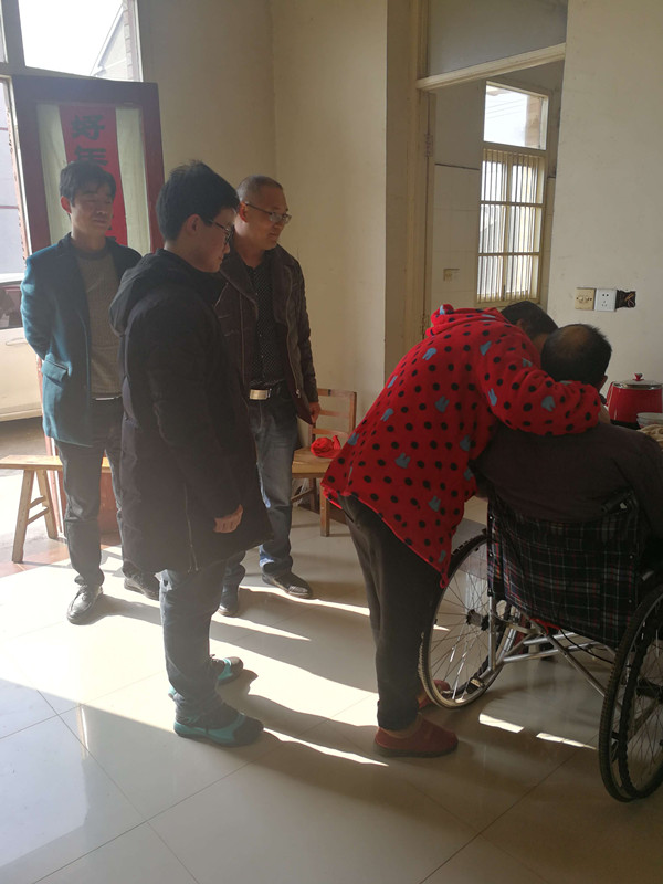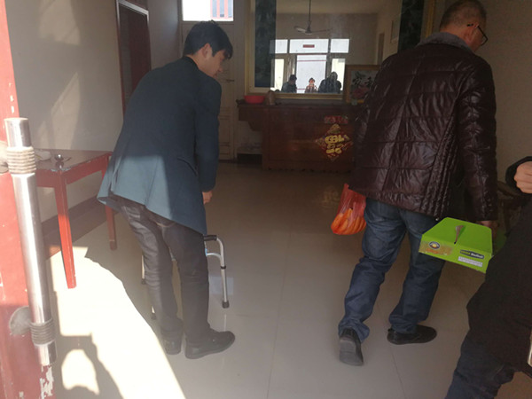 本次活动助力学生另一个是来自电信系16EZ04班张杰超同学,张杰超同学的父亲去年出了一个严重的车祸,瘫痪在床。为了父亲练习走路,他一直想给父亲买一个助跑器。电信系全体党员在了解了他家的困难以后,就一起帮助他完成他的心愿。11月22日上午,在班主任陆秦华老师的带领下,党员周平老师,冯霞老师一起来到树勋,看望他的父母,张杰超和他家人非常的感动。
