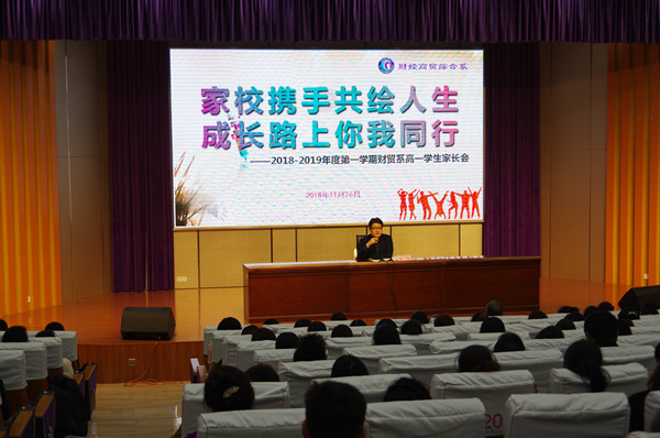 11月25日下午2:20,财贸系在文苑报告厅召开了18级学生家长会。会议由王飞主任主讲。
