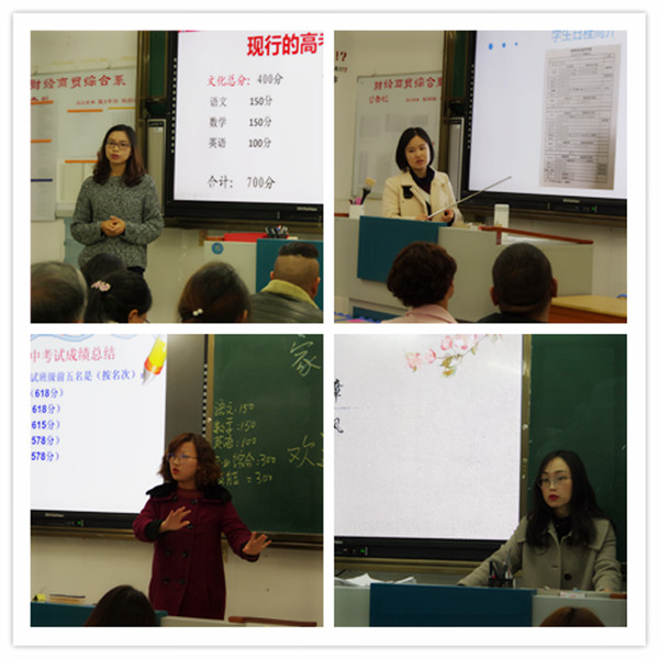 在各位家长观看了学校宣传片《先锋》之后,王飞主任首先给大家详细介绍了对口单招高考模式,使得各位家长明白了孩子在学校的努力方向和目标。接着,他结合本次期中检测情况,从学校高度重视、班主任认真负责、教师教学管理有方、学生学习状态良好等方面介绍了高一年级整体情况。最后,王主任对全体家长提出相关要求。一是构建和谐的学习环境,要保持家庭和谐、师生和谐、生生和谐,多鼓励、肯定孩子。二是紧密联系班主任和任课教师,及时了解孩子在校的思想状况、学习状态、身体情况、学科成绩变化,尽可能多方面掌握孩子信息,以便随时调控。三是做孩子的知心人,想办法抽时间陪孩子谈心,让孩子充分感受到源自家人的关注和关心。四是理解和配合学校各项工作,教育学生安心在校学习,强化学校纪律管理,保证学习的高效。