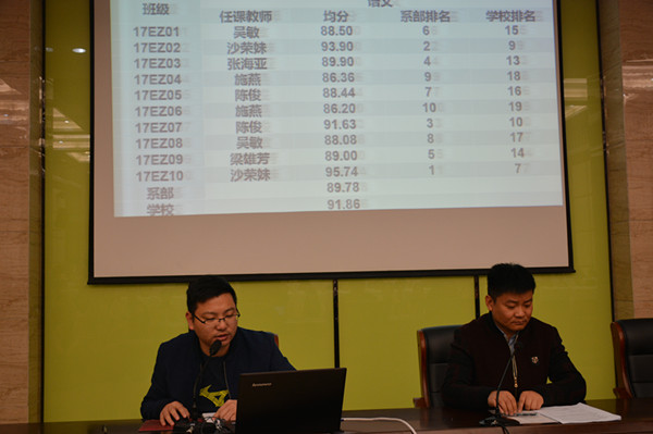 会议的第一个议程,17级年级组长钮锦辉老师对各班成绩进行分析,他指出了目前班级与班级之间存在的差距,以及学生个体学科间发展不平衡等问题。