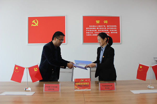 为进一步深入学习贯彻落实党的十九大、习近平新时代中国特色社会主义思想及系列讲话精神,全面推进基层党组织建设,搭建党建联创共建平台,中共海门中专综合党支部和中共南通美世界企业管理服务有限公司党支部通过前期的沟通交流,于11月22日下午,在我校A楼1420综合支部党员活动室就党建联创共建的活动形式和内容进行协商,并达成协议。 作为我校物业社会化服务单位,南通美世界企业管理服务有限公司一直以来在服务质量和品质上努力提升,员工素质上也在不断提高。根据实际情况,双方党支部达成共识,成立联创共建工作小组,试推“两委”交叉任职制。双方充分利用本单位党建资源,围绕“基层支部规范工程示范支部”建设标准,共享党建工作信息,优势互补,实现党建与业务合作良性互动。通过“同上一堂党课、同过一次组织生活、共同组织联谊活动、开展党员帮扶志愿服务”等方式组织互帮互学活动。同时双方开展项目合作,加强沟通和联系,围绕党建工作和海门中专物业服务项目,实现资源共享,互通有无,合作创新,从而达到双赢。 最后,综合党支部书记袁兵与美世界党支部书记陆美华共同签订了协议,此次携手党建联创共建活动,提高了基层党组织的创造力、凝聚力和战斗力,为综合支部形成“组织共建、队伍共抓、资源共享、发展共谋”的党建工作新格局谱写了新篇。(韦彩红)