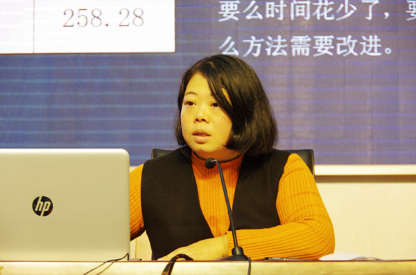 会议第一个议程是沈怡婷科长对本次期中检测成绩进行数据分析。她不但对本系内部各班文化课均分、同专业班级专业课均分进行了对比分析,还对两系部之间文化课均分进行了横向比较。此外,沈科长还将本次考试成绩与上次月考及中考成绩进行了纵向对比,对各班各学科成绩增幅以及优生人数变化情况给予详细解读。本次成绩分析不但肯定了取得的进步,还指出存在问题,提出了具体解决措施。生动直观的数据分析,使得全体同学把握了目前形势,明确了今后努力方向。