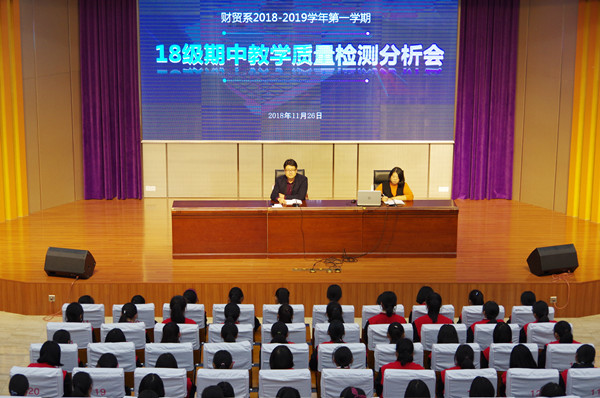 11月26日中午12:20,财贸系在文苑报告厅召开18级高一期中质量检测分析学生大会。会议由王飞主任主持。