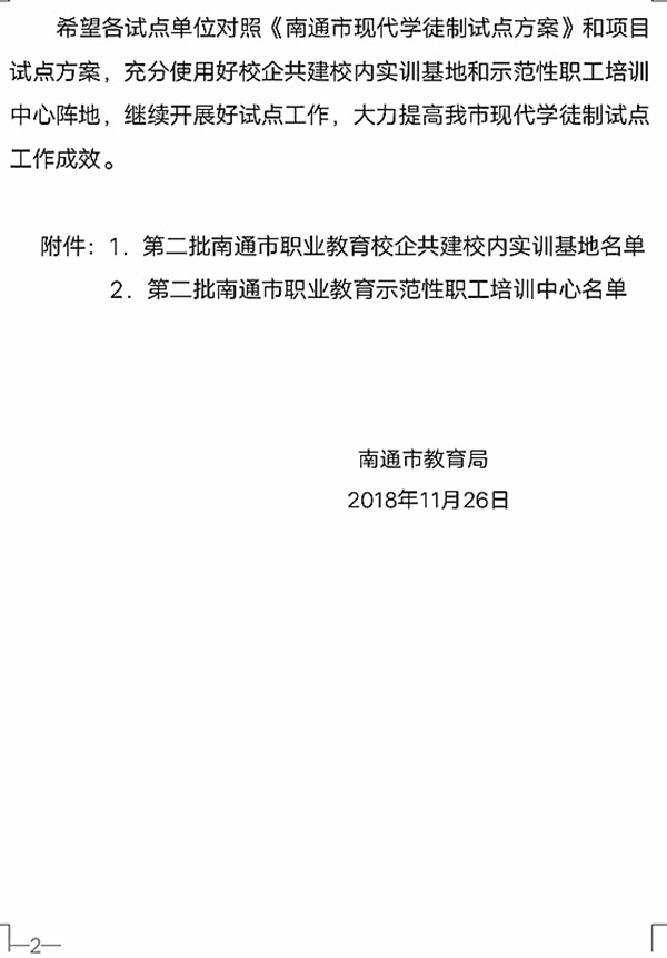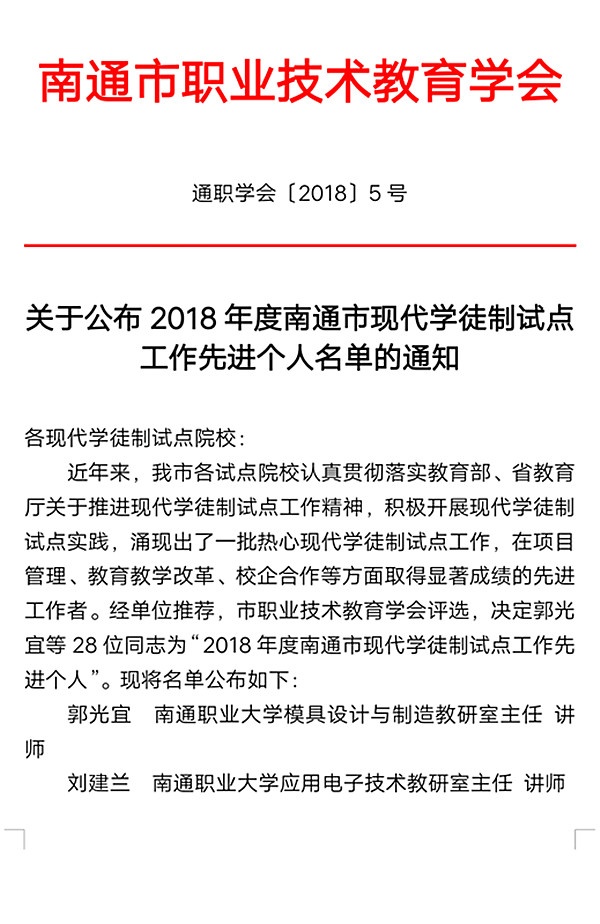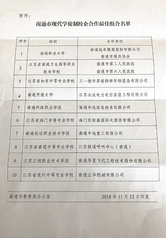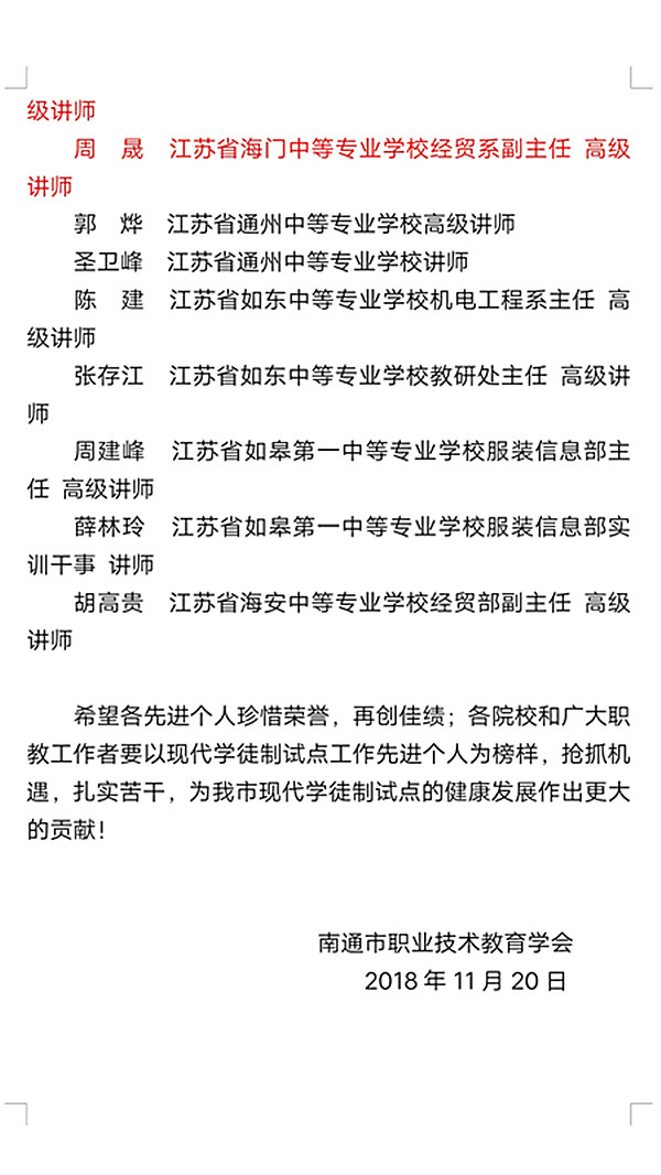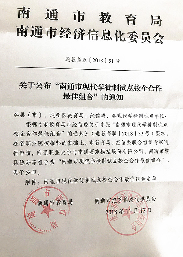 近日,南通市教育局陆续发文,经贸系中餐烹饪南通市现代学徒制试点项目经系部、专业老师、企业方等的共同努力再添新成绩,获评南通市示范性职业教育实习(实训)基地,南通市现代学徒试点校企合作最佳组合,南通市职业教育校企共建校内实训基地,郁建菊主任、周晟副主任获2018年度南通市现代学徒制试点工作先进个人。