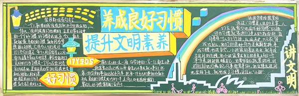 11月份,根据学工部“11月份黑板报安排”,本期黑板报主题为“养成良好习惯,提升文明素养”。按照惯例由系部进行初评筛选,一共上传30幅作品。选送的作品紧紧围绕主题资料丰富,设计新颖,形式多样。