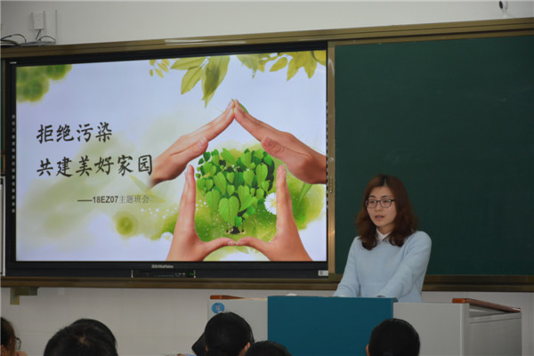 上午第一节课,电信系开展“系统治理污染,共建美丽家园”的主题班会。