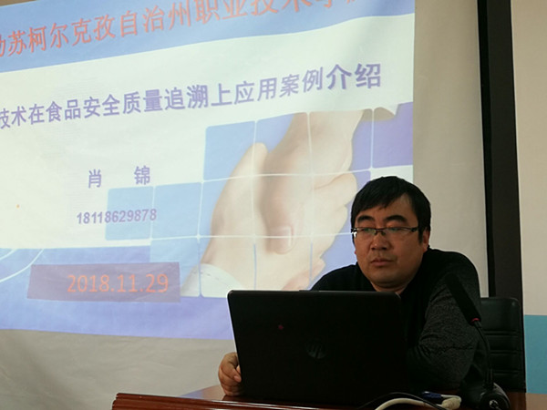 “民以食为天,食以安为先”。2018年11月29日下午,为放大援疆教师的引领辐射作用,由江苏援疆教师主动承办的两周一次的援疆专题系列讲座活动如期举行。此次活动由我们电信系肖锦老师,高级农业经济师,现克州职业技术学校农经工程系副主任,为克州职业技术学校全校教职工带来一场题为“聚焦食品安全 共创和谐社会 ——现代信息技术在食品安全质量追溯上应用案例介绍”的学术讲座。副校长侯志东(援疆教师)主持此次讲座,各系部领导、全校老师共同聆听了此次讲座。