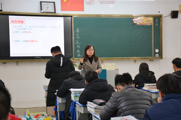 陆玲老师在16YZ10班开设的比赛课是语文学科的《语言运用之得体》。首先,陆老师从语言交流情境导入,通过对历年高考题和新考纲的分析,把知识点细化为明确目标、看清对象、注重场合、注重谦词与敬语四个方面。接着,展示精选典型事例,通过小组讨论,归纳答题思路。特别是形式多样的课堂练习,充分起到了巩固和提升作用。