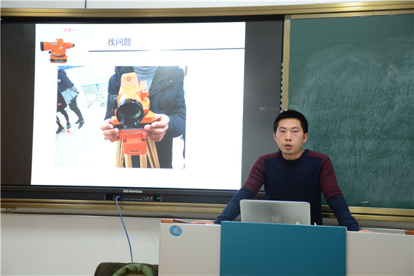 本节课的课题为《水准仪粗平技巧提升》,为了充分提升学生主动学习的积极性,黄老师以“找”为主线,找问题、找规律、找方法、找差距、找信心五个环节贯穿始终,并利用多媒体、直播平台、泛雅平台等多样化的信息手段逐步展现课堂。课堂的最后,黄老师给同学们组织了一场小组PK赛,在紧张的比赛氛围中让学生学以致用,取得了良好的教学效果。