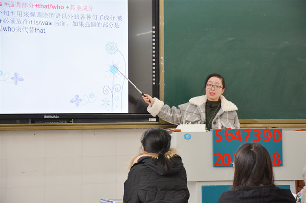 12月5日上午第三节,许庆庆老师在16YZ08班开设了一堂高三英语二轮复习校级公开课——《强调句型》,朱娟副主任携英语教研组多位老师参加了本次听课活动。
