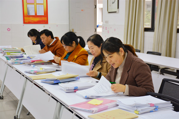 第一个阶段是对各班任课老师上交的资料进行详细检查。5日上午,朱娟副主任组织各教研组长在D226会议室集中,根据《系部教学常规检查表》项目内容,对照教学“五认真”标准要求,查看各老师上交的备课笔记、听课笔记、学生作业等材料,并逐项给每位老师打分、定级。
