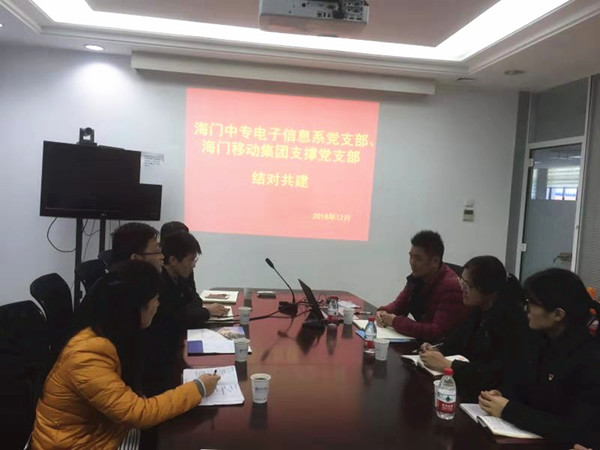 为了响应党的十九大“不忘初心,牢记使命”的主题,加强基层党组织建设,提升支部创造力、建设力,12月6日,海门中专电信系党支部与海门移动集团支撑党支部在海门移动公司大楼的支部活动室开展结对共建活动。