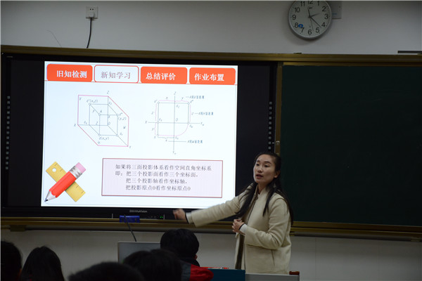12月6日下午第二课,黄杨老师在17TD01班开设了一堂题为《点的坐标与位置》公开课。教务处钱玉强副主任、熊伟民副主任、建工系邹熊冰副主任及建筑专业教师参加了听课与评课活动。