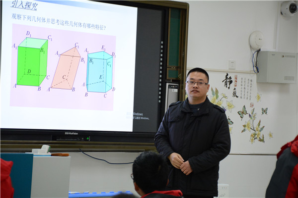 授课过程中,沈老师利用学生教室以及身边物体引入空间几何体概念,熟练运用鸿合电子交互系统辅助教学,引导学生观察特征,动脑思考来一步步探索新知,极大地激发了学生的学习兴趣。在课中的练习环节上,沈老师所选内容由浅入深,环环相扣,两个练习环节,两种练习模式,有效培养学生的自主探研与学习能力。教学过程中沈老师将引导学生分析问题,随时注重引导让学生来归纳总结,进一步强化思想。教学思路清晰、目标明确、教态自然,达到了较好的教学效果。