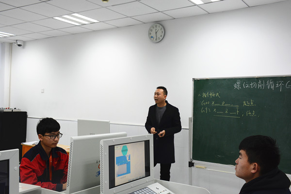 12月6日下午第一课,陈晨老师在G3-311数控仿真实训室开设一节名为《螺纹切削循环G92指令》的公开课。陈海滨、陈忠平、黄引主任及季海燕、王煜等老师参加了听课评课活动。