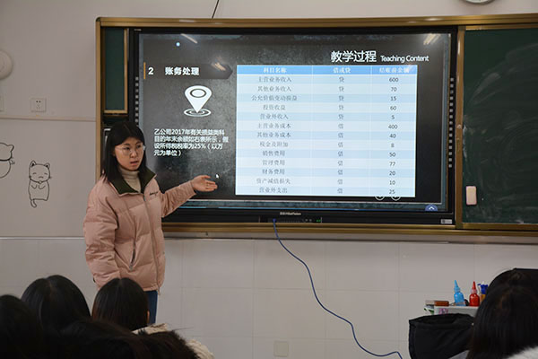 12月12日上午第二节课,经贸系陆潇楠老师在16MD03班开设了一堂题为《本年利润》的海门市级公开课。教学工作部施晓东主任、经贸系陈忠平、信息系陈建华、财贸系朱娟、电信系施向华副主任及何小华、史永琴、茅健亮、周剑、施怡辰、蔡芳芳、郁佳丽等近二十位来自各个系部的教师参加了听课评课活动。
