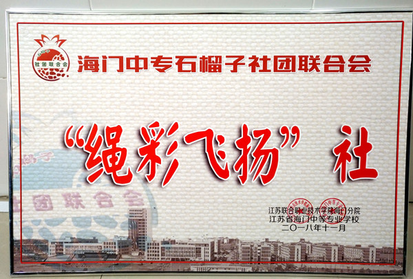 12月3日,海门中专石榴子社团联合会的“绳彩飞扬”社团顺利开团,他们将在以后的社团活动中以绳会友,一根绳子变换各种花样,从基础的单摇到双飞再到三飞,从左右打绳到前后麻花,大绳套小绳,一绳到双绳,小绳大世界,单人到双人再到多人“绳彩飞扬”社团将会带着所有的会员一起跳动一起带绳飞扬!