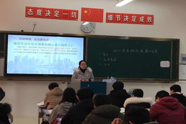 12月14日上午第二节课,建工系秦少伟老师在16TD02班开展了一堂《轴心受压构件承载力计算》的教学公开课。张慧琴、王国华、黄杨、李建梅等十多位老师参加了听课与评课活动。