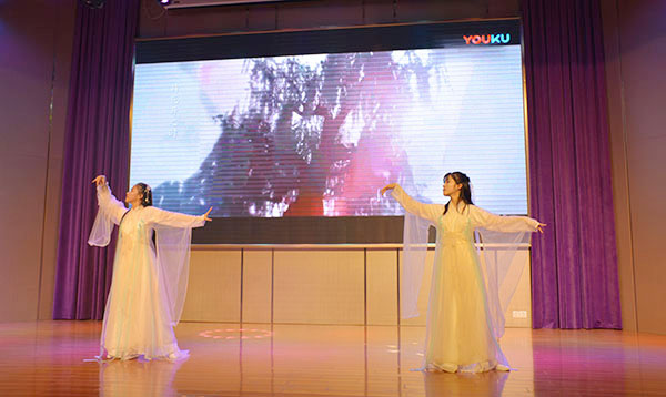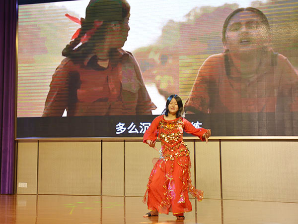 整场才艺秀内容丰富,形式多样,从各个方面展示了经贸学生的多才多艺和默契。率先闪亮登场的俩学生主持人可谓大方得体、妙语连珠,用暖如春风般的笑脸拉开了整场展演的序幕。歌唱类的节目虽多,却是题材多样、内容丰富,是一场让耳朵舒畅的SPA:甜美风《小酒窝》、《小幸运》将朦胧情愫、朋友情怀演绎的淋漓尽致;空灵风《我的一个道姑朋友》、《可能否》柔软了多少少男少女懵懂的情怀;文艺范《无问》、《晴天》带同学们徜徉成长的青葱岁月;两首英文歌曲的磁性纯正发音和一首RAP说唱《我在人民广场吃着炸鸡》的表演更是圈粉无数,学生潇洒自如、明星范十足的腔调点燃了场下师生们热烈的情怀,赢得了全体师生的阵阵掌声。我们经贸学子是多才缤纷的,仙仙的古典双人舞《不染》、风情的泰国神曲肚皮舞《坏蛋老爸》、行云流水的古筝独奏《浏阳河》更是将整个展演推向了高潮,她们灵动的舞姿,熟练的琴艺让在场的师生们真真地感受到了青春正好、非凡实力;同学们或端庄或活泼或深情在舞台上陆续登场,在场的师生们耳目一新、深醉其中。