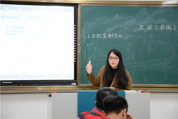 李老师的授课的课题是《混凝土的施工配合比》,旨在让学生掌握混凝土施工配合比的相关计算。首先通过“摊面饼”的做法步骤回忆混凝土的施工过程,引入本节课的内容。在讲解的过程中由浅入深,循序渐进,一步步引导学生推导出混凝土的施工配合比的公式。在总结阶段,李老师选取学生总结本节课知识点,既加深了学生对本节内容的认识,也提高了学生的语言表达能力。一堂课下来,学生愉快地学到新技术新知识。