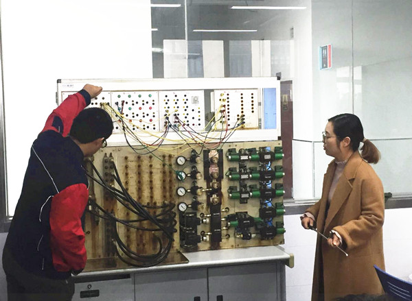 12月20日下午第一节,机电系蔡红艳老师在G3-213液压实训室开设题为《采用行程阀实现顺序动作的回路》的校级公开课。机电系主任室成员和数控教研组部分老师参加了听课活动。