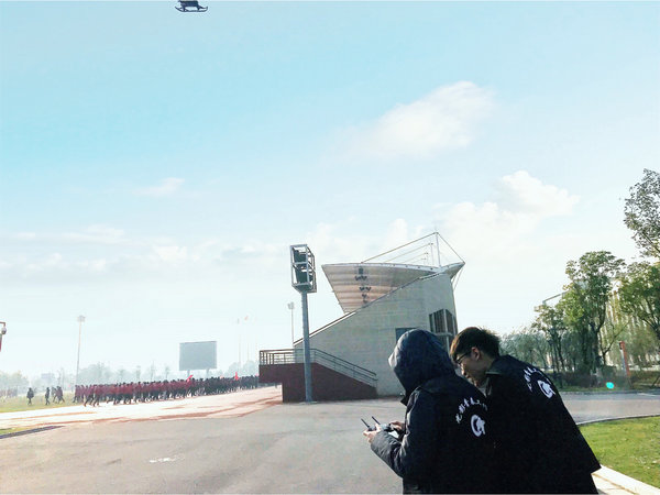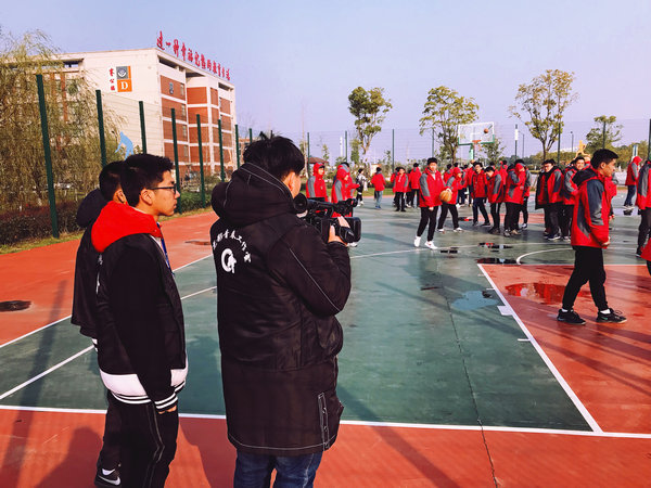 2018年12月12日,多天阴雨之后的晴朗,学校里进行了本年度的第一次校园阳光体育运动,校园里出现了这样一群身影,光影青春工作室的孩子们也出动了。他们扛着摄像机拿着单反航拍飞机在校园里采景,尽管冬日里的寒风呼啸,气温很低也没有阻挡他们追逐兴趣爱好的脚步。