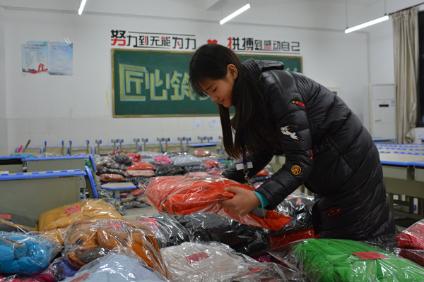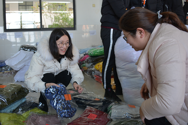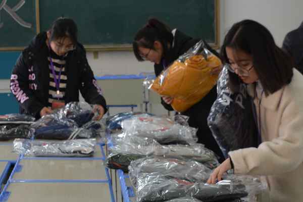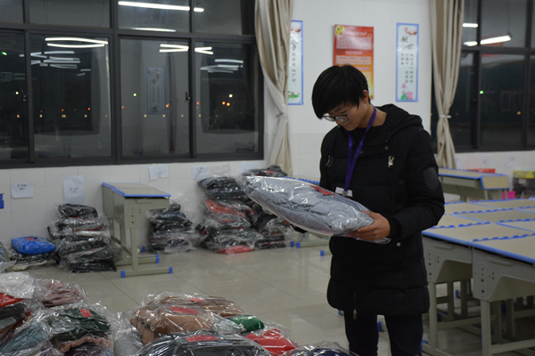 经过学校和系部的前期充分动员,财贸学子积极踊跃展开行动,利用周末放假回家休息的机会,整理出家里多余的、六七成新的羽绒服或者棉服,在周日返校时带到学校。当天下午,在各班主任的指导下,同学们将衣物整齐叠好放入专用包装袋,仔细封好袋口并贴上红色标签。接着,以班级为单位,大家把捐赠衣物和鞋子送到D楼103室登记,学生会组织进行分类整理打包,最终将由学校统一汇集完毕并发货到新疆地区。本次捐赠活动中,财贸系教师也积极参与、带头捐赠,给学生树立了良好榜样。