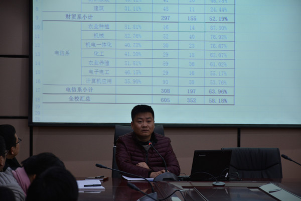 首先,江勇主任分析了班级模拟上线人数,详细列出各专业模拟本科率;比较了各专业中各门课程在南通市的排名;还对平衡专业进行了对比。他采用大数据分析的方式,切实用数据说话,使成绩和问题一目了然。